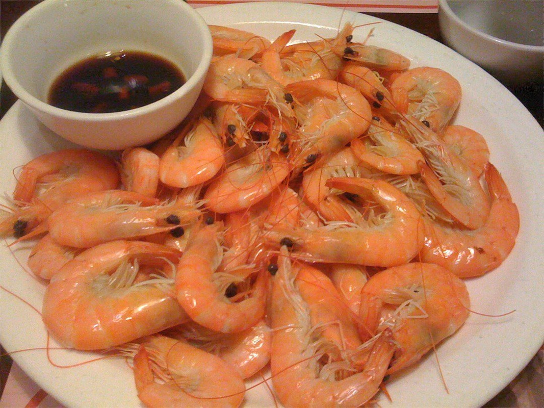 Wash rinse den boil shrimps in water with ginger and some other seasoning agent, drain dry, place on plate can eat with own chilli vinegar sauce riaos!