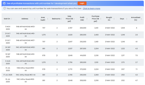 2.8k yields per month isn't it very good based on the amount of money put in? Which investment product gives you this amount of yield. perhaps a moneymind guru can come out and explain for the amount put in is the yields good or not. I am not sure how people calculate the yields for selling property, using the example that i listed, i googled how to calculate annualize yields and use this formula : [(Ending Value / Beginning Value)^(1 / Number of Years)] - 1, i also verified against chatgpt, the annualized yield for that property is ~7.9%. You can go moneymind or whereever and ask, 7.9% is much higher than most of the investment products out there.